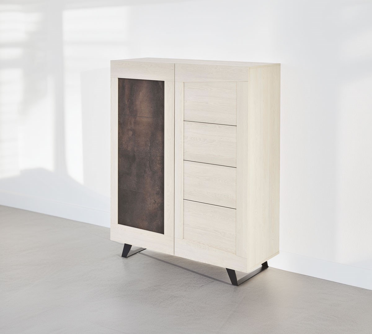 De kleur Gladstone Oak biedt een warme, natuurlijke tint en creëert een uitnodigende sfeer in je eetkamer. De voorkant van imitatiekeramiek voegt een luxe dimensie toe aan dit meubel. De subtiele textuur en het keramische patroon voegen een artistiek tintje toe en vormen een elegant contrast met het Gladstone Oak hout.