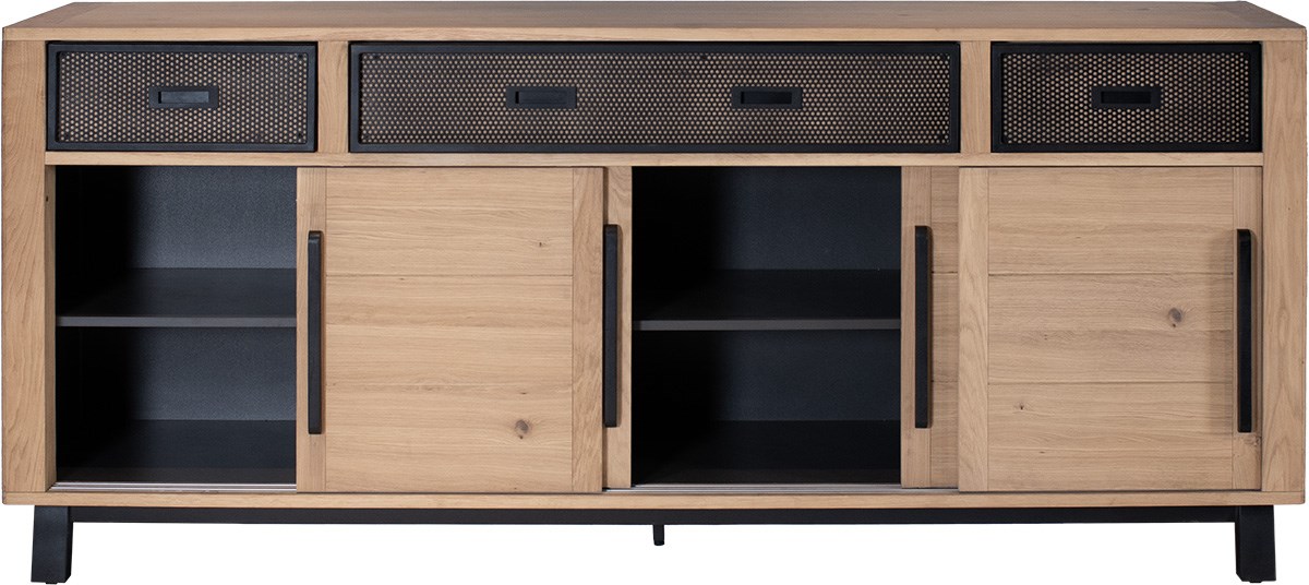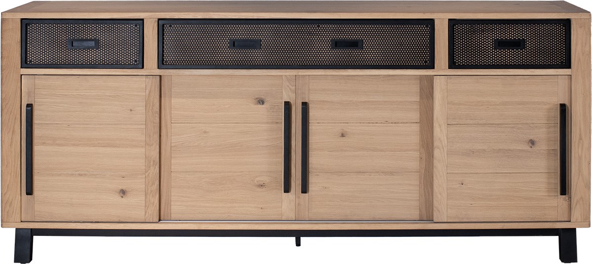 Het JULES dressoir van massief eiken combineert stevigheid en elegantie. De vier schuifdeuren en drie lades bieden praktische, discrete opbergruimte voor je spullen. Het massief eikenhout, dat is behandeld om de natuurlijke nerf beter tot zijn recht te laten komen, voegt een warme, authentieke toets toe aan je interieur. Het sobere, moderne ontwerp past in elke interieurstijl, waardoor dit dressoir een functioneel, tijdloos meubelstuk is dat gemakkelijk te onderhouden is en de tand des tijds zal doorstaan. Ideaal om je woonkamer of eetkamer in stijl te organiseren.