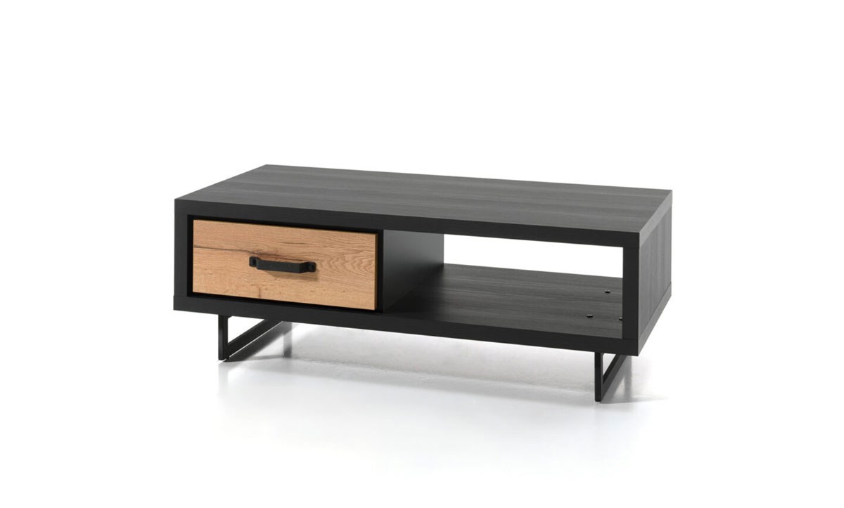 Als je een fan bent van de industriële stijl, is de collectie SPIDER perfect! De salontafel heeft 1 nis en 1 lade. De poten zijn in metaal met een mat zwarte poederafwerking. De mix van hout decor en metaal brengt een design kant aan jouw salon.