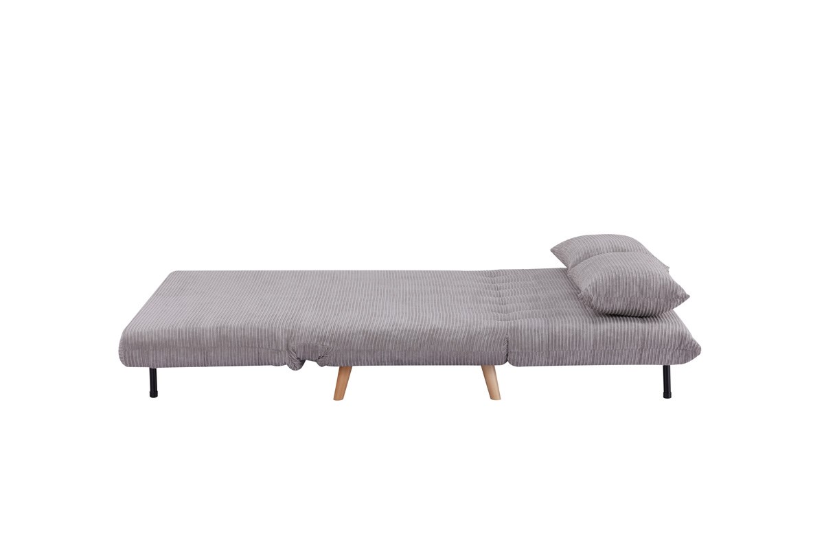 Deze stijlvolle slaapbank is niet alleen een zitmeubel, maar ook een handige bedbank voor één persoon. Dankzij het innovatieve ontwerp kun je moeiteloos overschakelen van een gezellige zithoek naar een comfortabel bed. De lichtgrijze geribbelde stof voegt een eigentijdse touch toe aan je woonruimte en is bovendien gemakkelijk te onderhouden.